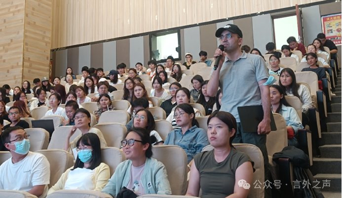 在互动环节,现场师生踊跃提问,围绕“如何培养翻译中的情感感知力”、“‘心译’理论对人工智能翻译发展的启示”、“中西方身体观差异对翻译的影响”等话题与罗宾逊教授进行了长达半小时的深度交流与思维碰撞。教授以其渊博的学识和幽默的语言逐一耐心解答,其真知灼见引得现场掌声阵阵。